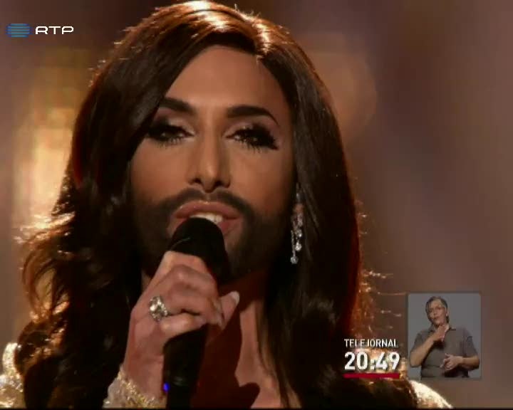 O travesti Conchita Wurst venceu o Festival Eurovisão da canção. Wurst apresentou-se em palco de vestido, cabelo comprido e barba.