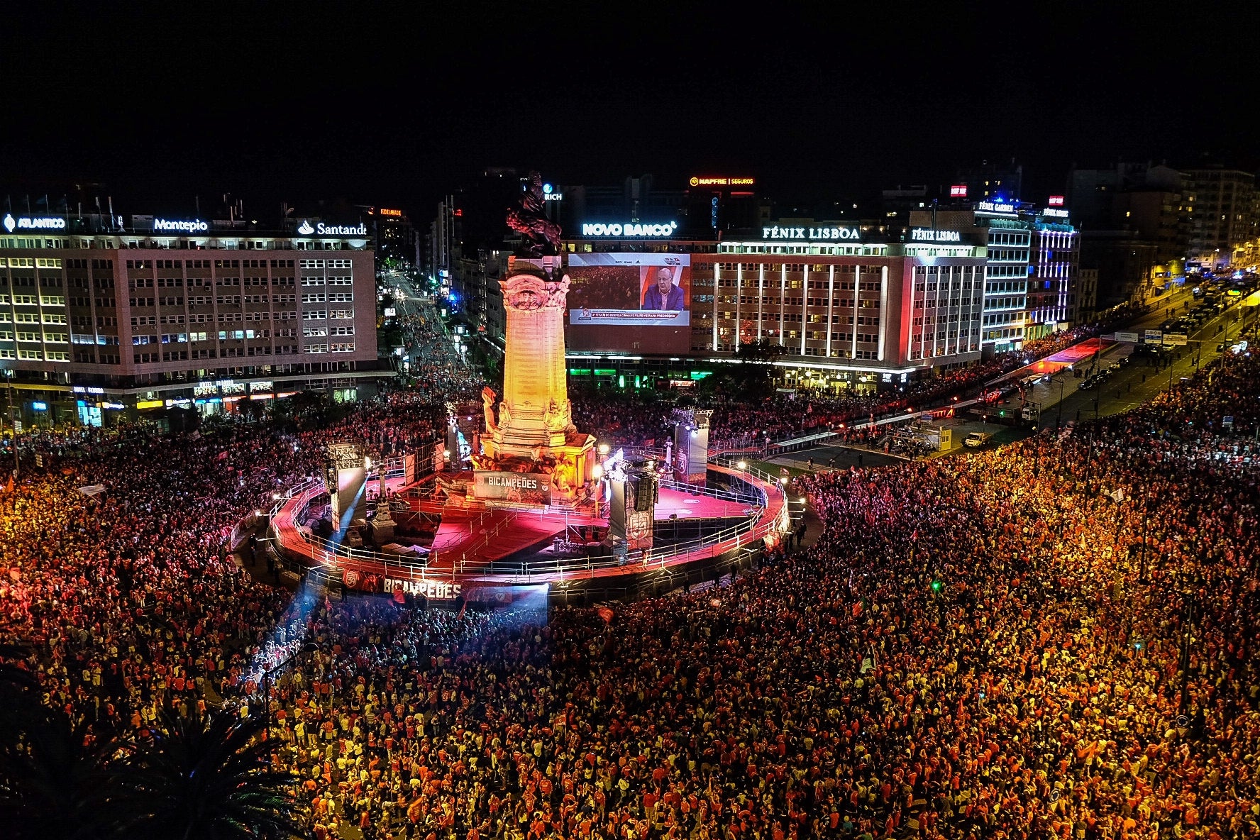 23h40 - Há dezenas de milhares de benfiquistas concentrados no Marquês de Pombal. Fala-se em 100 mil pessoas.