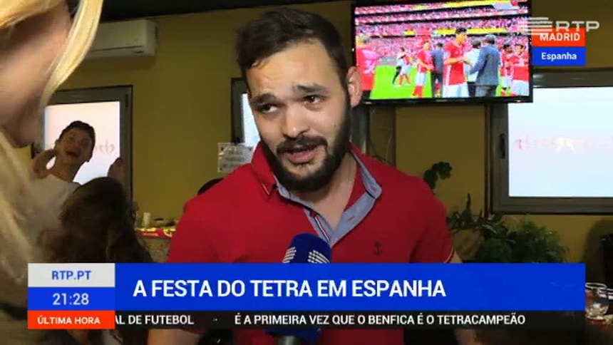 Longe de Portugal há vários portugueses que também festejam o tetracampeonato do Benfica. Em Madrid, os benfiquistas celebram o quarto título consecutivo dos 'encarnados'.