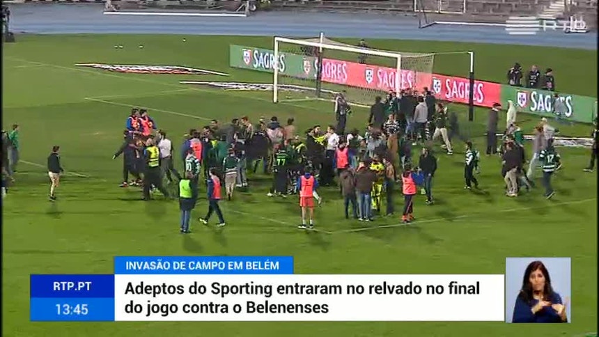 A vitória do Sporting nos descontos provocou uma invasão de campo dos adeptos para celebrar a vitória com os jogadores.