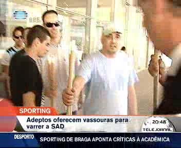 O Sporting subiu ao segundo lugar da Liga, mas os adeptos continuam descontentes e foram a Alvalade entregar vassouras para varrer o piso da Administração da SAD.