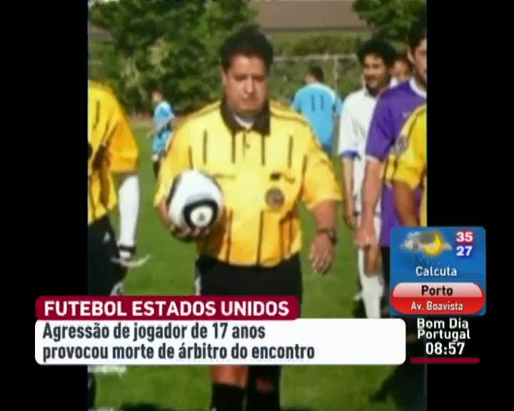 No Estado norte-americano do Utah, um árbitro de futebol morreu depois de ter sido agredido por um jogador de 17 anos. O juiz mostrou um cartão amarelo. O jogador não gostou e respondeu com um soco na nuca.
