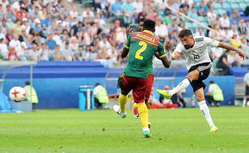 A Alemanha venceu este domingo os Camarões, por 3-1, e assegurou o primeiro lugar no Grupo B da Taça das Confederações. Os germânicos vão defrontar nas meias-finais da competição o México, segundo classificado no grupo de Portugal. A Seleção Nacional vai jogar contra o Chile.