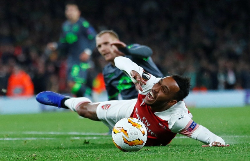 Os 'leões' empataram a zero no campo do Arsenal. O Sporting conseguiu parar o ciclo de vitórias dos 'gunners' e assim garantir uma desvantagem de apenas 3 pontos para a equipa inglesa (10 pontos) neste Grupo E. Este empate permitiu o apuramento dos londrinos para os 16 avos de final e deixou os 'leões' bem encaminhados. Na próxima jornada, a equipa portuguesa desloca-se ao Azerbaijão para defronar o Qarabag, que esta quinta-feira venceu em casa do Volskla Poltava por 1-0, sendo que assegura o apuramento em caso de vitória, ou mesmo de empate, desde que os ucranianos não vençam na receção aos londrinos. (Foto: Reuters)
