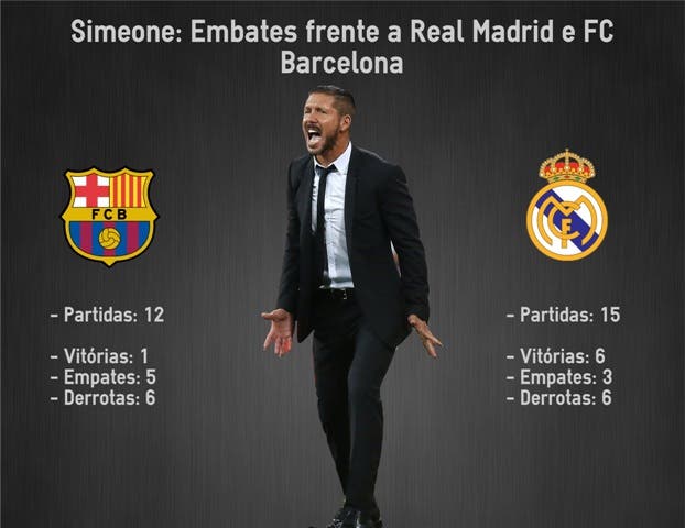 De resto, números esclarecedores: metade dos jogos disputados frente aos catalães foram perdidos. No entanto, uma curiosidade: na época 2013/2014, Simeone conseguiu não perder qualquer partida contra a equipa de Messi e Neymar Jr.