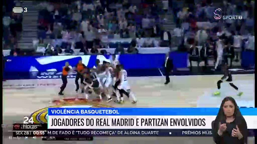 São imagens impressionantes na alta roda do basquetebol europeu. O jogo entre Real Madrid e Partizan, dos quartos de final da Euroliga, ficou marcado por cenas de pancadaria entre jogadores das duas equipas.