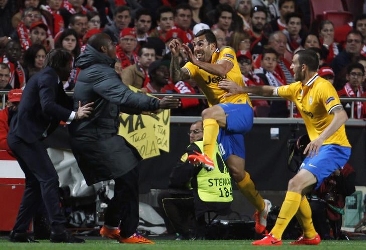 Benfica com 15 minutos de luxo encostou a Juventus às «cordas», masrcou logo aos 2 minutos e podia ter feito o segundo ao 11 minutos, por Sulejmani. A Juventus puxou dos galões, «agarrou» no jogo equilibrando a partida. Na segunda parte o Benfica entrou apático e foi submetido a uma enorme pressão que deu resultado aos 72 minutos com um golo de Carlitos Tevez. Jesus mexeu na equipa, equilibrou e conseguiu por Lima um grande golo. Até ao final o golo podia ter caido para qualquer um dos lados. Benfica vai a Turim com uma vantagem de um golo.