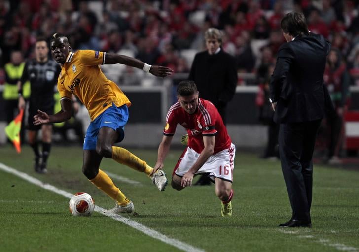 24'- Cruzamento perigoso de Pogba, grande corte de Luisão novamente