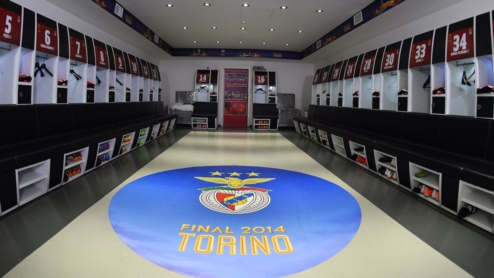 Este é o Balneário onde os jogadores do Benfica vão se equipar e ouvir as táticas pela voz de Jorge Jesus