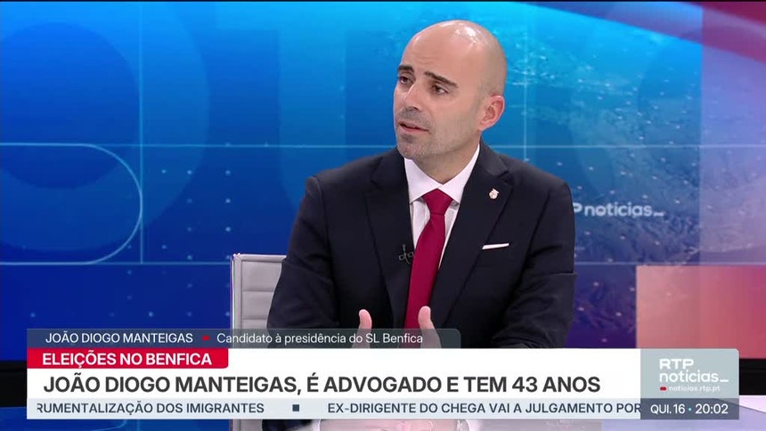 O candidato à presidência do Benfica esteve esta quinta-feira na RTP Notícias a dar uma entrevista em que falou da estratégia da sua candidatura. João Diogo Manteigas garantiu que existirão dois diretores desportivos, numa aposta principal ligada à formação.