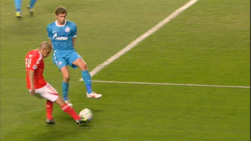 65' - Lombaerts outra vez! Cardozo deu para Nolito e este coloca na esquerda para a corrida de Gaitán que cruza para a entrada da área onde estava Nolito para voltar a receber e rematar. O camisola 6 do Zenit antecipou-se e cortou na hora certa!