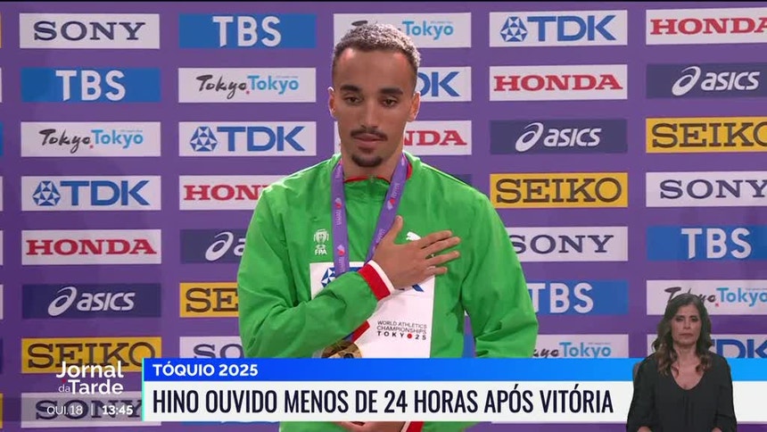 Após ter conquistado na quarta-feira a medalha de ouro na final dos 1.500 metros nos mundiais de atletismo, em Tóquio, o atleta português recebeu esta quinta-feira a medalha na capital japonesa. Isaac Nader é o oitavo campeão do mundo por Portugal.