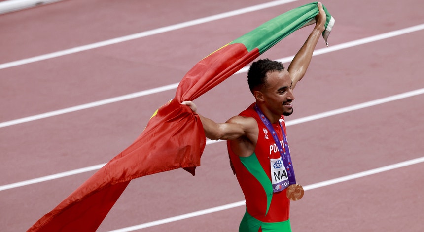 O meio-fundista português Isaac Nader subiu esta quinta-feira ao lugar mais alto do pódio para receber a medalha de ouro, após o triunfo nos 1.500 metros dos Mundiais de Tóquio.