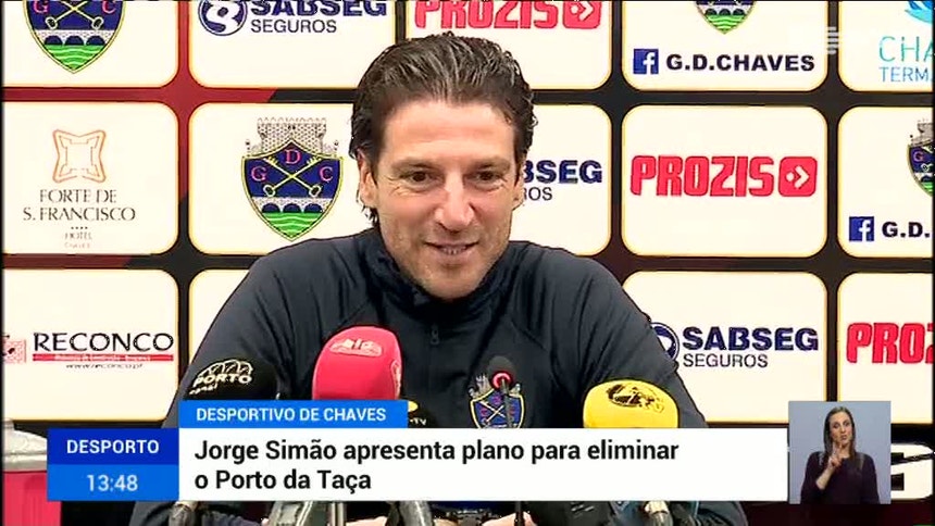Desporto Chaves vai tentar eliminar o FC Porto O treinador do Chaves, Jorge Simão, anunciou um plano com três pontos para tentar eliminar o Porto, apesar de reconhecer o favoritismo dos dragões. Sílvia Brandão, Simão Martinho / VER MAIS Artigos Relacionados FC Porto enfrenta o Chaves para a Taça FC Porto joga em Chaves o futuro na Taça PUB
