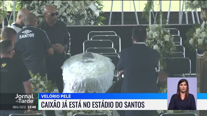 O caixão foi colocado em plena relvado do Estádio do Santos. A Vila Belmiro vai ser pequena para tanta gente que quer prestar a última homenagem ao "Rei".
