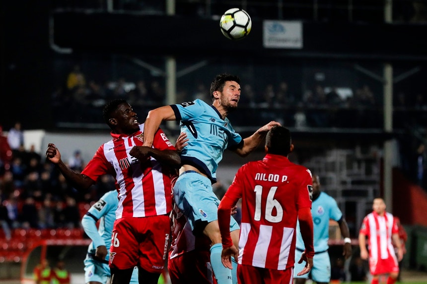 Apesar de marcar cedo, o FC Porto não superou o D. Aves e empatou a uma bola. A expulsão de Corona não justifica, por si só, este resultado menos positivo. A passe de Tiquinho Soares, Ricardo Pereira inaugurou o marcador aos cinco minutos de jogo num terreno muito escorregadio. Aos 10', o Aves fez o esférico bater na barra da baliza de José Sá. Num jogo em que ambos os guarda-redes iam dando conta do recado, e perante um Aves inconformado, a vantagem portista justificava-se pela ambição com que entrou em campo. Na 2ª parte Corona viu o segundo amarelo e foi expulso aos 51'. A insistência da equipa da casa deu frutos aos 62 minutos, com Vitor Gomes a surgir na área a cabecear para o fundo das redes. Cinco minutos depois, e antes de dar lugar a Marega, Aboubakar teve oportunidade de fazer o 2-1, mas atirou por cima. Ainda faltava muito para o final, mas o resultado não sofreu alterações. O FC Porto mantém a liderança mas pode ver os rivais a aproximarem-se na classificação. O brasileiro Soares volta a ser titular nos 'dragões'. O Desportivo das Aves pretende acabar com a invencibilidade do FC Porto na I Liga. No entanto, a equipa de Sérgio Conceição está motivada para manter a liderança isolada, dias depois do empate na Turquia em jogo da Champions. (Foto: Lusa)