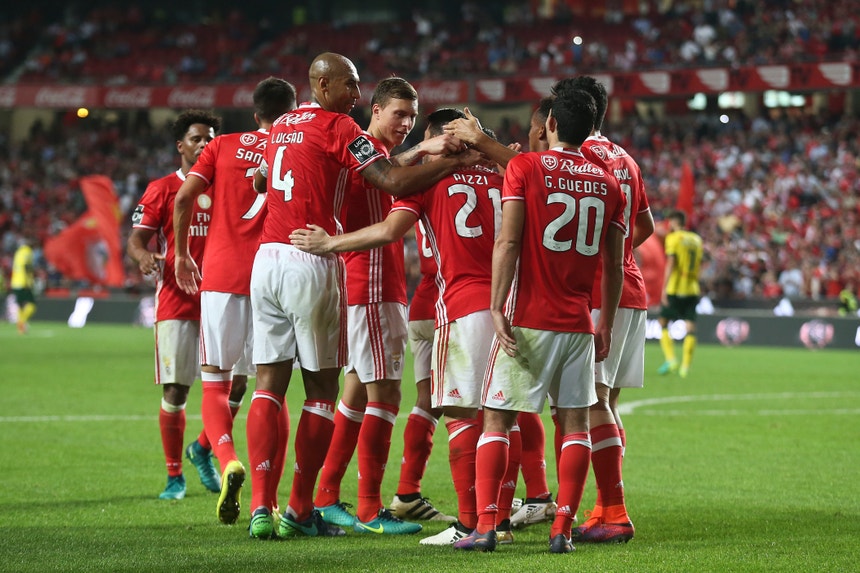 No primeiro golo, aos 26 minutos, ainda na primeira metade do jogo, Gonçalo Guedes, um dos melhores em campo, fuzilou a baliza adversária com um soberbo remate à entrada da área. Pertenceu a Salvio o segundo golo da partida, após centro do lado esquerdo e simulação preciosa (quase meio-golo), por parte de Mitroglou que proporcionou um belo remate ao argentino mesmo à entrada da área, deixando eufóricos os mais de 50 mil adeptos presentes. Aos 87 minutos, Pizzi, após alguns ressaltos, colocou a bola no fundo da baliza, fazendo o 3-0. A vitória do líder da I Liga deveu-se sobretudo à intensidade com que os jogadores da casa se entregaram aos lances disputados, ao mesmo tempo que atacaram a baliza contrária sempre num ritmo forte e intenso. O Paços também esteve perto do golo, com destaque para Cícero, e foi mesmo o primeiro a ter a iniciativa atacante. Em resumo, fez-se justiça em campo, mas com muito empenho das duas equipas. Os 'encarnados' somam agora 25 pontos e aguardam os desfecho dos desafios dos habituais rivais para fecharem as contas desta 9ª. jornada. (Foto: Lusa)