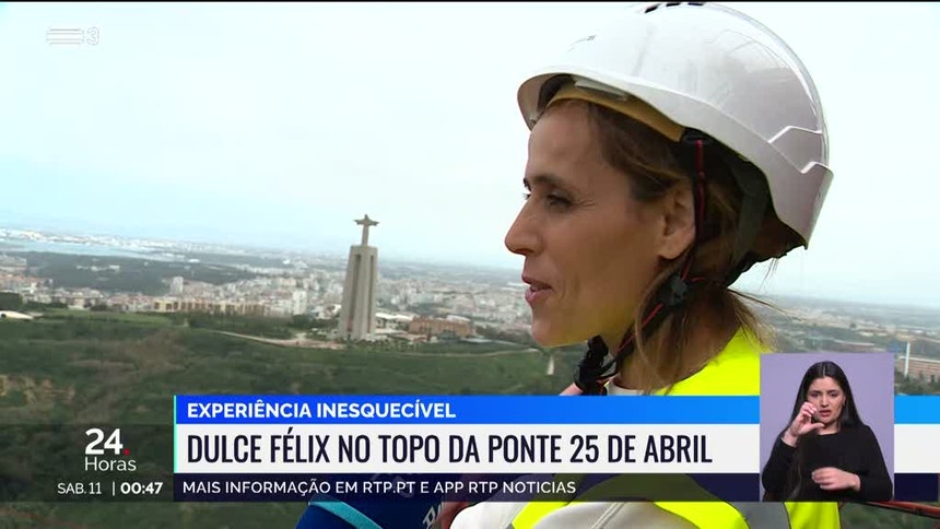 Dulce Fénix no topo da ponte 25 de Abril