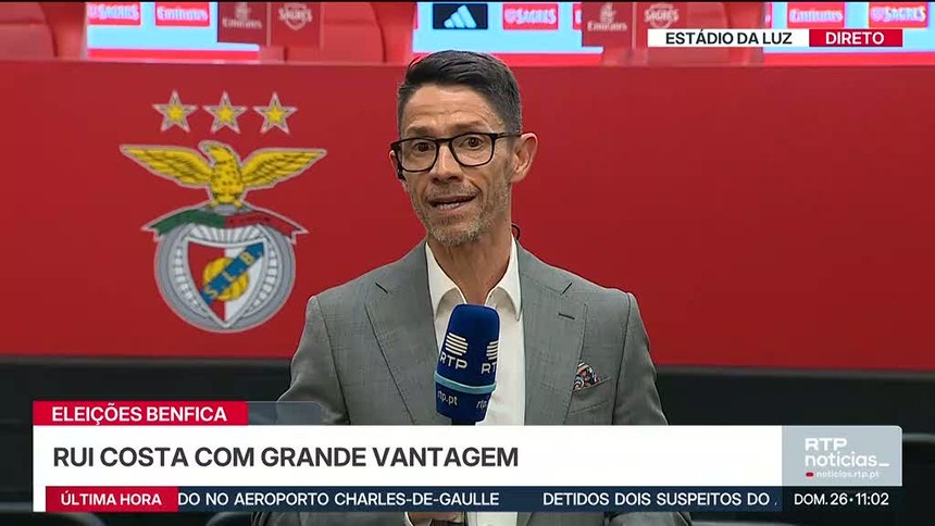 É já certo que Rui Costa ganhará uma primeira volta das eleições no Benfica com importante vantagem face ao segundo candidato, João Noronha Lopes. Cerca das 13h00, o resultado final ainda não estava apurado, mas o atual presidente do clube encarnado reunia somava mais de 45 por cento dos votos - já próximo, portanto, de uma reeleição à primeira volta.