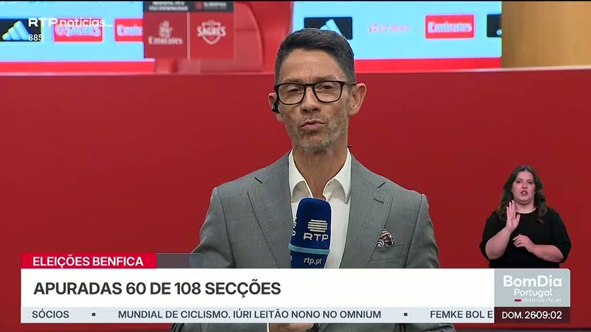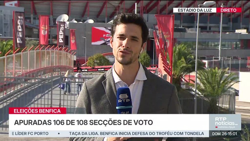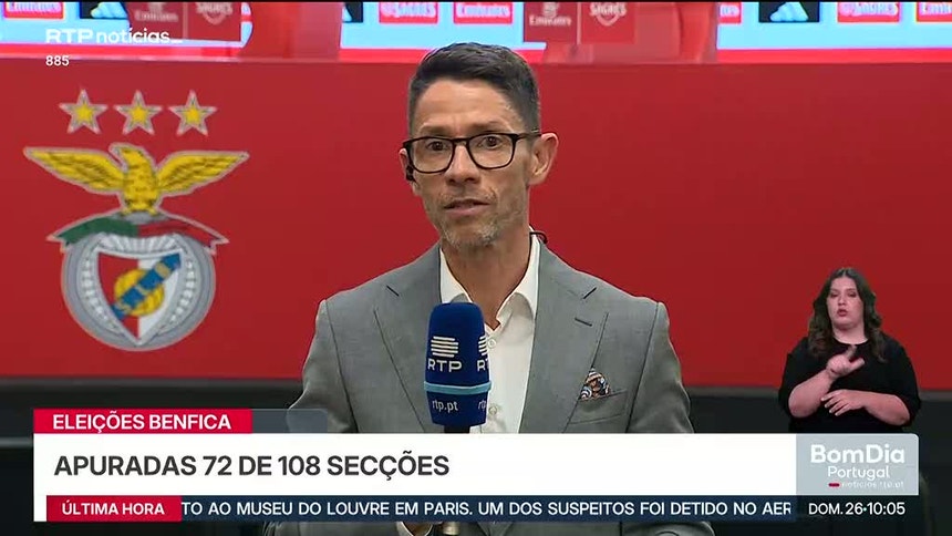 Apuradas 107 de 108 secções. Espera-se declaração de Rui Costa às 17h30