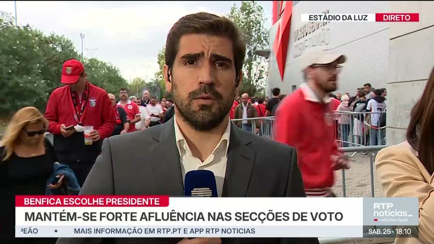 As urnas vão manter-se abertas até às 22h00. Têm sido longas as filas para votar na Luz. Além das urnas instaladas no estádio, há 107 locais de voto em todo o mundo.