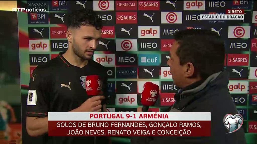 Gonçalo Ramos foi titular hoje na Seleção e admite que neste jogo frente à Arménia não havia outra opção: "era ganhar ou ganhar".