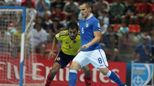 12' Ambas as equipas dividem a posse de bola, quer espanhóis, quer brasileiros praticam um futsal muito cauteloso.