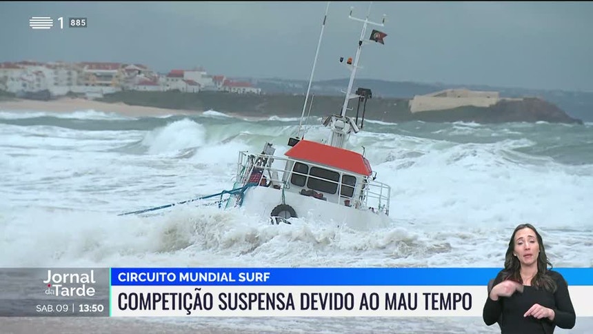 A tempestade dos últimos dias obrigou a suspender a competição, na etapa portuguesa do mundial de surf. A organização espera conseguir reatar a prova amanhã.
