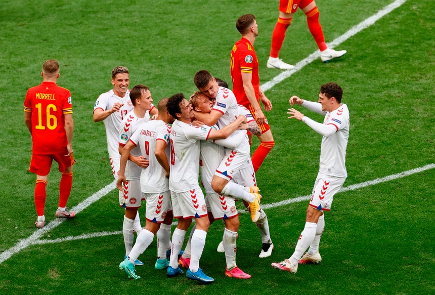 O País de Gales entrou com vontade, mas foi uma Dinamarca muito confiante a dominar o jogo. Um remate de fora da área por parte de Kasper Dolberg deixou os nórdicos em vantagem (1-0) ao intervalo. Dolberg aumentou para 2-0 logo após o descanso, colocando a Dinamarca a gerir o resultado para a qualificação rumo aos quartos de final. Joakim Maehle ainda fez o terceiro 3 e Braithwaite o 4-0, dando o golpe final aos galeses com uma goleada. Nos quartos de final, em Baku, no Azerbaijão, a Dinamarca defronta o vencedor do embate entre os Países Baixos e a República Checa, que se defrontam domingo em Budapeste.