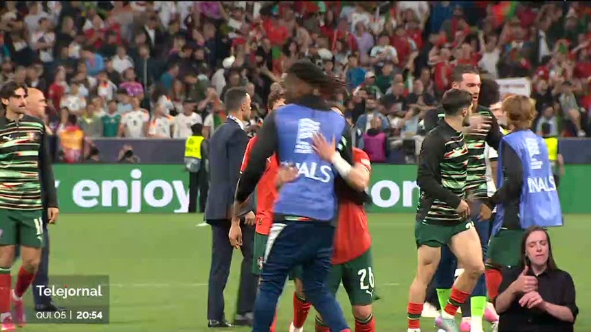 Desporto | Seleção Nacional Festa lusa em Munique. Triunfo histórico 25 anos depois RTP / VER MAIS Os jogadores portugueses ficaram orgulhosos pela vitória frente à Alemanha o que não acontecia há 25 anos. Ambicionam agora conquistar mais uma vez a Taça da Liga das Nações. PUB