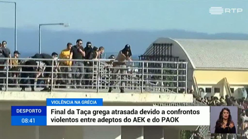 Pelo menos 20 pessoas ficaram feridas na sequência de confrontos entre adeptos do AEK de Atenas e do PAOK de Salónica.