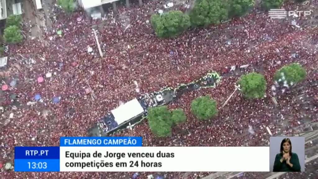 Um milhão de pessoas em delírio saudou a equipa do Flamengo nas ruas do Rio de Janeiro. A equipa de Jorge Jesus conquistou a Taça dos Libertadores e o campeonato brasileiro.
