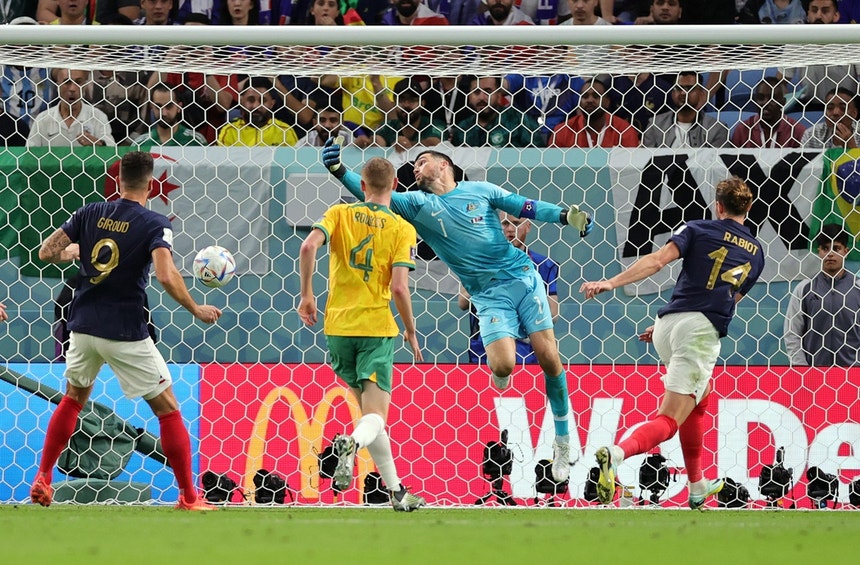 A França, campeã em título, viu a atrevida Austrália chegar ao golo, aos 9 minutos, num ataque bem delineado e com execução eficaz, ao segundo poste, por parte de Craig Goodwin. A equipa da Austrália ainda esteve perto do segundo, mas a reação gaulesa começou a sentir-se ao passar da meia hora. Primeiro por Adrien Rabiot, de cabeça, a fazer o 1-1, e pouco depois pelo inevitável Giroud, a concretizar o 2-1 com que se atingiu o intervalo, apesar de se assitir a uma bola ao poste da baliza francesa, ainda antes do descanso. Numa segunda parte com a Austrália mais permissiva, a máquina gaulesa partiu para uma goleada. Mbappé fez o "gosto ao pé" neste Mundial, Giroud "bisou", perto do minuto 70, fixando o marcador em 4-1. A França é primeira do Grupo D, seguida de Tunísia e Dinamarca, com 1 ponto, e a Austrália tem zero.