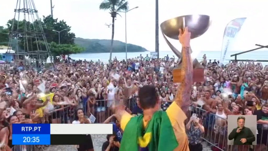 Desporto Gabriel Medina recebido em festa no Brasil O campeão do mundo de surf regressou a casa no Brasil depois de ter conquistado pela segunda vez, na sua carreira, o título mundial de surf. RTP / VER MAIS Gabriel Medina foi recebido em festa na sua terra natal, em Maresias, São Paulo. PUB
