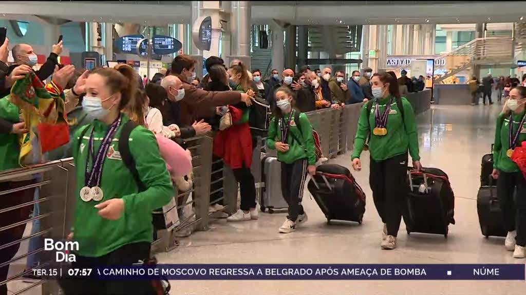 Chegaram a Portugal as ginastas portuguesas medalhadas no mundial de ginástica acrobática. As campeãs portuguesas dizem-se orgulhosas.