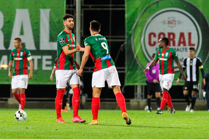 Um "bis" do avançado brasileiro Rodrigo Pinho permitiu esta noite ao Marítimo dar a volta ao marcador e vencer em casa do grande rival Nacional por 2-1, no jogo de abertura da 23.ª jornada da I Liga de futebol. Além do dérbi, estava em jogo um triunfo importante nas contas à fuga aos lugares de descida, tendo os alvinegros se adiantado em cima do intervalo, através de Kenji Gorré, aos 44. Os verde rubros, que falharam uma grande penalidade aos 15 minutos, por Joel Tagueu, viraram na segunda metade, através do seu goleador Rodrigo Pinho, que, depois de regressar na ronda anterior, foi hoje titular e anotou os dois golos da sua equipa, aos 58 e 65, chegando aos nove tentos no campeonato. Com este triunfo, o Marítimo deixa a zona de descida e sobe ao 13.º lugar, com 21 pontos, os mesmos do Nacional, que caiu para o 14.º posto.