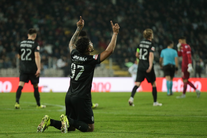 Francisco Trincão, aos 52 minutos, e o moçambicano Geny Catamo, aos 56, desfizeram a igualdade e o colombiano Luís Suárez, com o seu 20.º golo no campeonato, aos 75, confirmou a segunda vitória seguida aos bicampeões nacionais.
