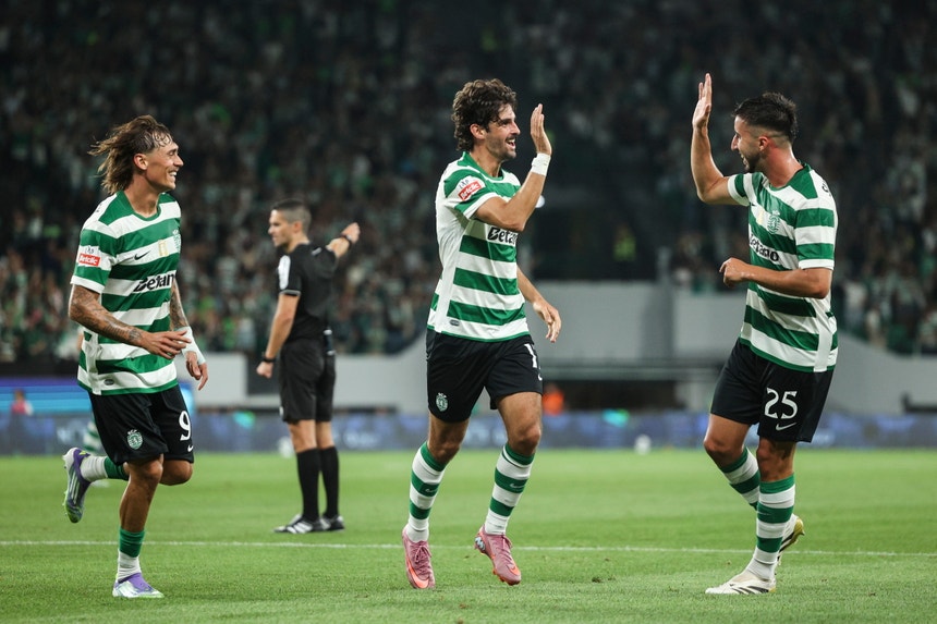 Ricardo Mangas, aos 20 e 50 minutos, o colombiano Luis Suárez, aos 31, de penálti, e 62, e Francisco Trincão, aos 45 e 76, ‘bisaram’ para os ‘leões’, num jogo marcado pela expulsão do forasteiro Dylan Nandín, aos 30.