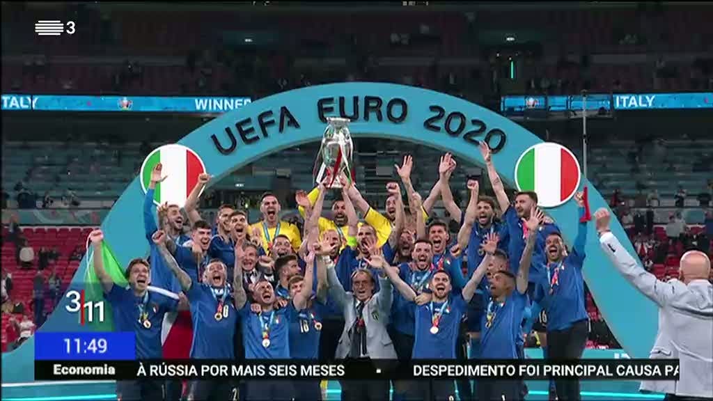 A seleção de Itália é a nova campeã da Europa. Depois 90 minutos com um empate a um golo, italianos e ingleses foram para prolongamento. E depois para os penáltis. A Squadra Azurra foi mais forte em Wembley e levou a Taça para Roma.