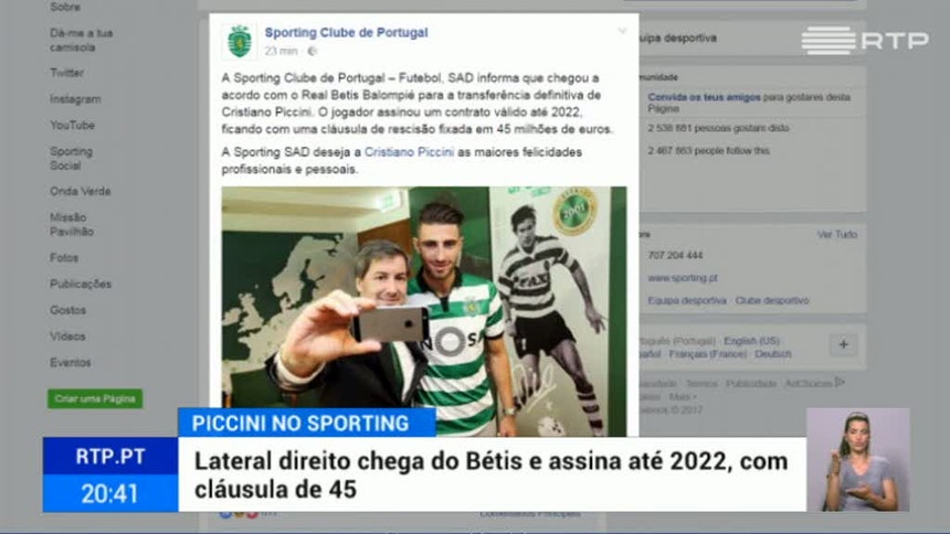 O jogador de 24 anos assinou um contrato válido até 2022. Piccini é lateral direito e chega do Bétis de Sevilha. A cláusula de rescisão do contrato do lateral direito é de 45 milhões de euros.