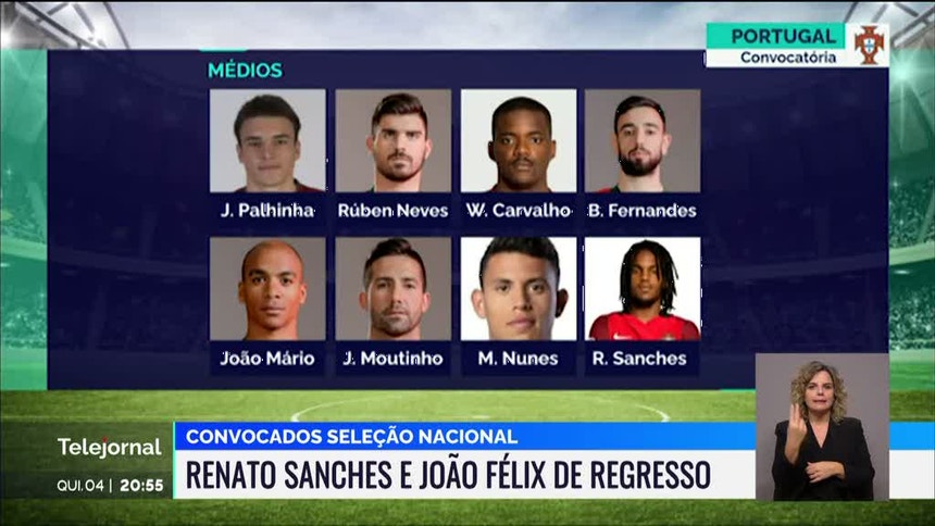Desporto João Félix e Renato Sanches estão de regresso aos convocados da Seleção Fernando Santos divulgou os 26 eleitos para os dois jogos decisivos que Portugal fará rumo ao mundial do Catar. RTP / VER MAIS O primeiro jogo será em Dublin, frente à República da Irlanda, e o segundo no Estádio da Luz com a Sérvia. PUB