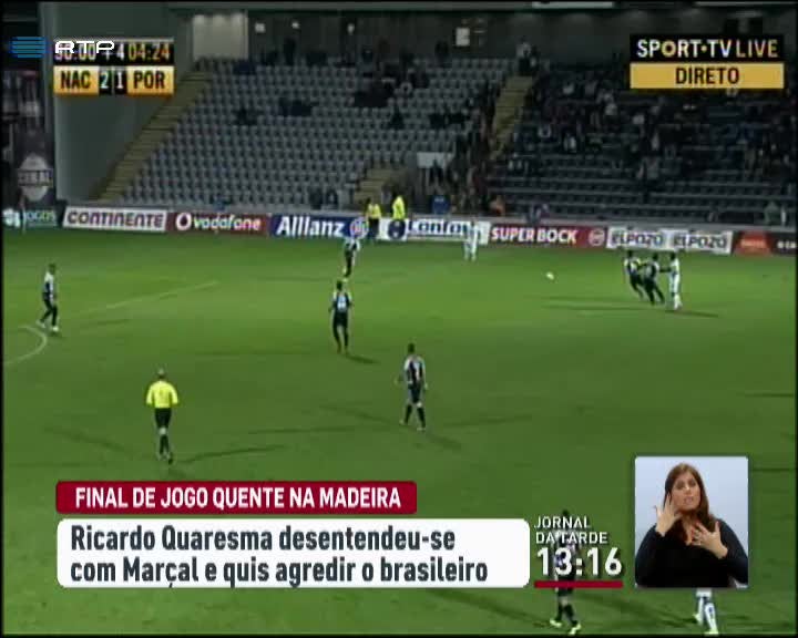 O Porto perdeu na Madeira com o Nacional por 2-1. Os dragões estão agora a 8 pontos do Sporting e a 15 do líder, o Benfica, O final do jogo na Madeira ficou marcado por desentendimentos entre jogadores. Ricardo Quaresma teve uma discussão com Marçal, do Nacional da Madeira e tiveram de ser vários elementos do staff do Porto a intervir... para serenar o internacional português.