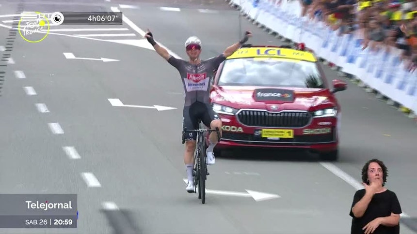 O australiano Kaden Groves venceu a penúltima etapa da volta a França em bicicleta. O dia acabou marcado pela chuva e por quedas.
