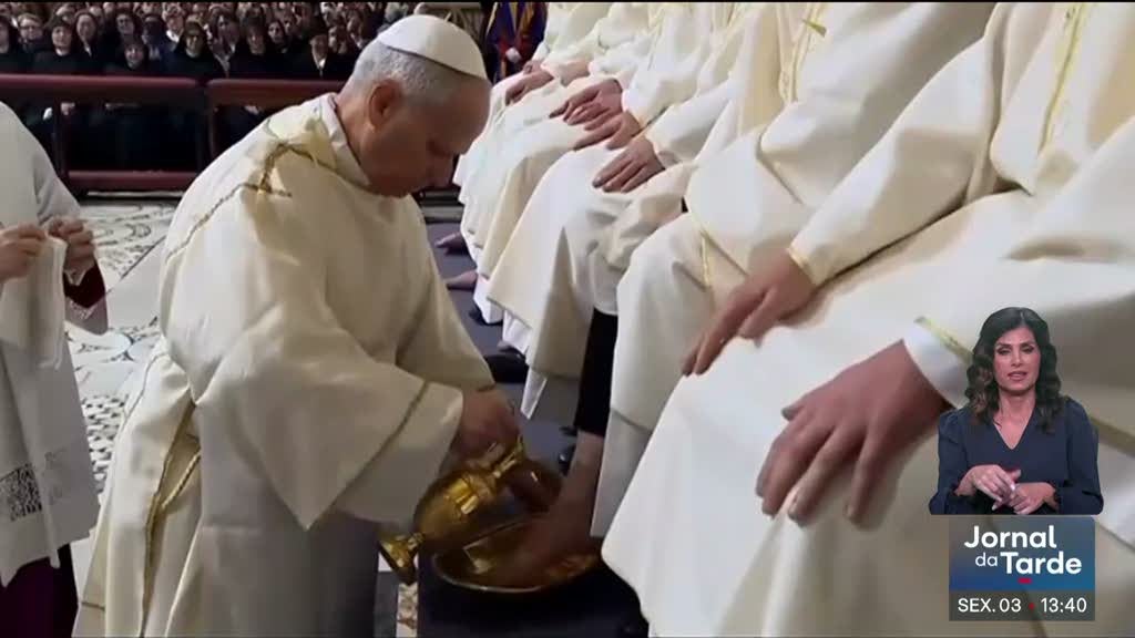 Papa Leão XIV cumpriu o ritual de lava-pés