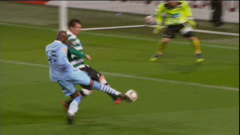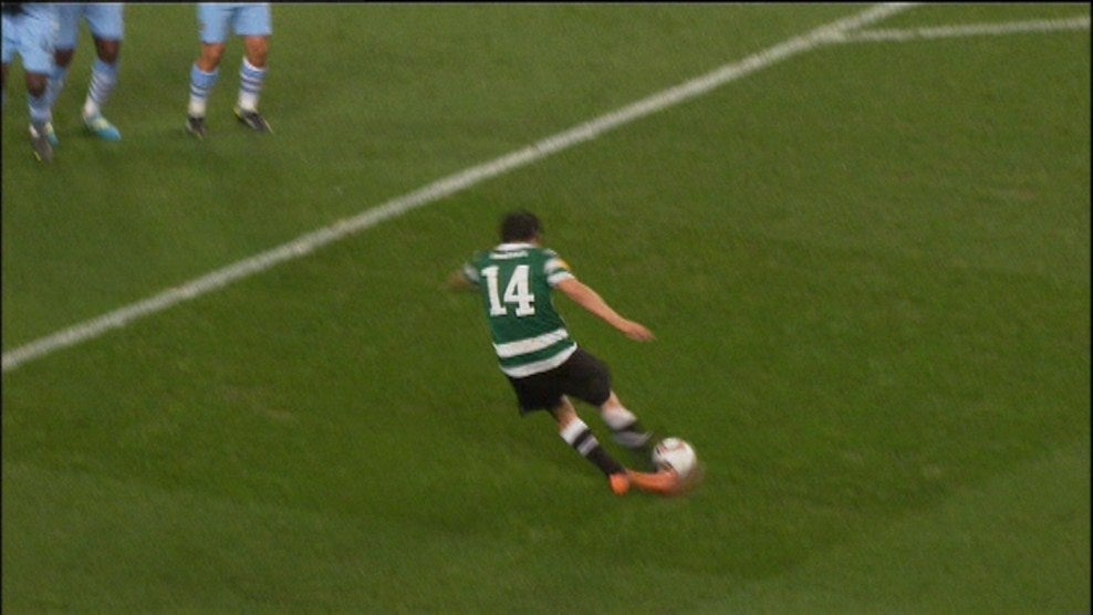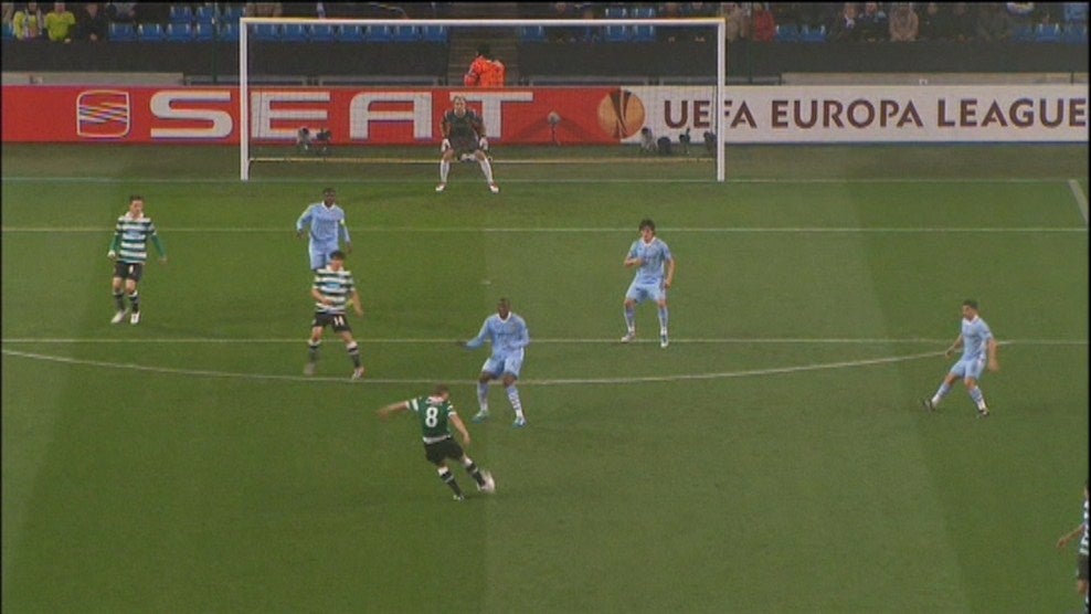 33' - Golo do Sporting! Marca Matías Fernández! Livre direto batido pelo chileno de forma exemplar para o primeiro golo da noite. Tudo começa numa falta infantil de Balotelli sobre Insúa. O Sporting alarga vantagem na eliminatória num remate fantástico de Matías que Joe Hart, que ainda toca na bola, não consegue desviar!