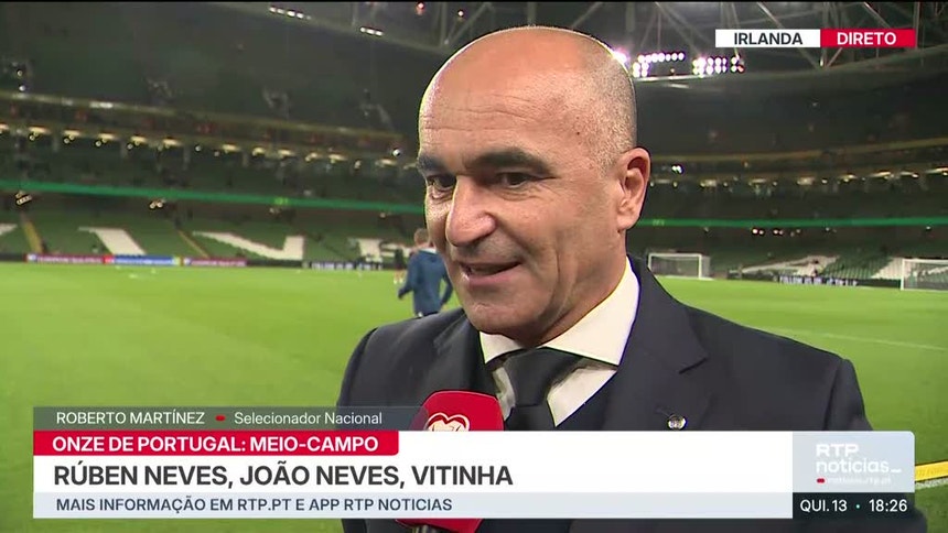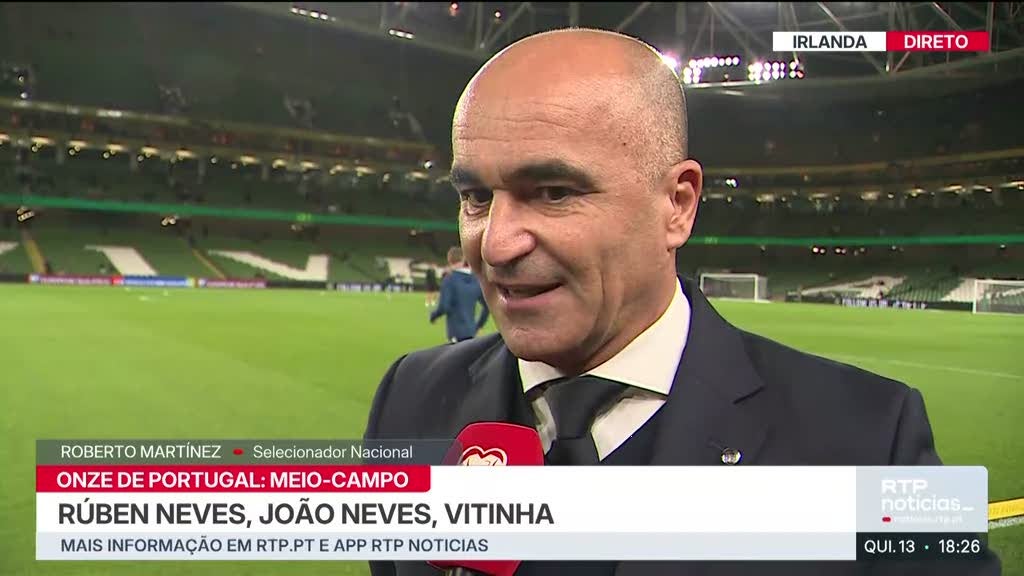 O selecionador nacional, Roberto Martínez, anunciou à RTP1 os titulares que vão defrontar a Irlanda, no jogo que pode carimbar a qualificação de Portugal para o Mundial de 2026.