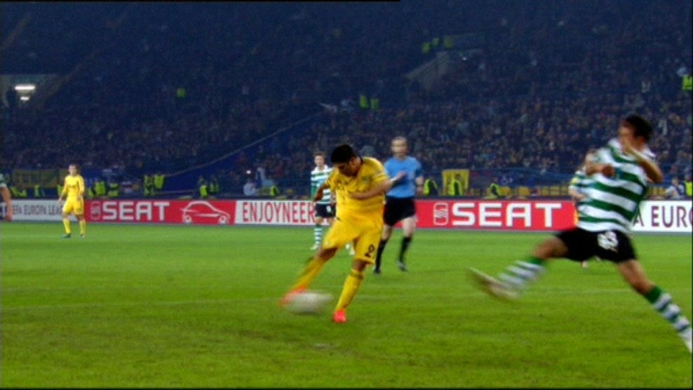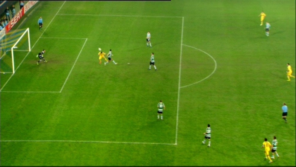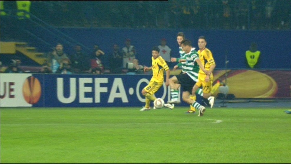 18' - Limpa Van Wolfswinkel! Canto batido por Cleiton Xavier, no lado direito, para o coração da área onde dois homens do Metalist não conseguem cabecear e a bola acaba por sobrar para o avançado leonino que veio atrás dar uma ajuda.