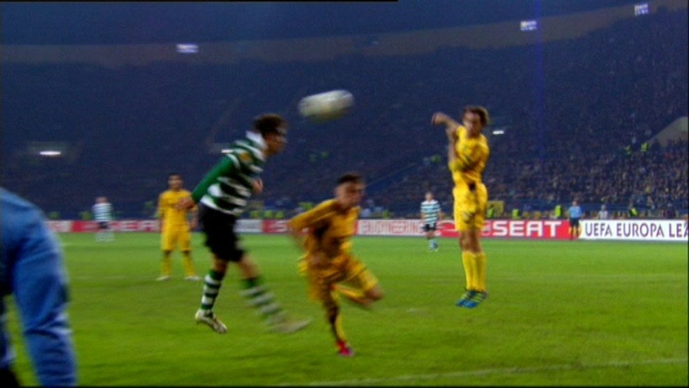 5' - Má decisão da equipa de arbitragem! Escapava-se Van Wolfswinkel, depois de uma desmarcação, solicitado por Insúa mas o árbitro auxiliar levanta a bandeirola e anula a jogada. O holandês estava em jogo e ficava isolado na cara de Goryainov.