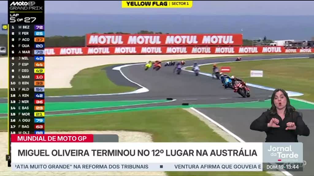 Miguel Oliveira terminou o Grande Prémio da Austrália em Moto GP no décimo segundo lugar. A prova foi ganha por Raul Fernandez. O piloto português sobe à vigésima posição da geral no Campeonato do Mundo de MotoGP, com 36 pontos.