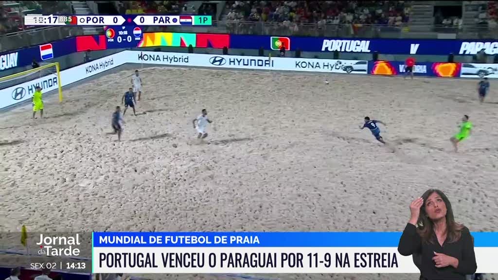 Portugal estreou-se no mundial de futebol de praia com uma vitória sobre o Paraguai por 11-9.